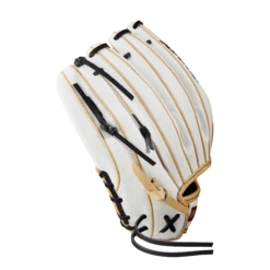White SuperSkin™ and Blonde Pro Stock® leather meet in the 2023 A2000® H12SS fastpitch glove to vacuum up ground balls and command the infield. Ideal for defensive stars turning two up the middle or making backhand plays at third base, this 12” infield glove offers the reach required by versatile playmakers. Gradient Bold Logos in Red and Black bring a modern appearance to the A2000 H12SS. The Blonde Pro Stock leather palm delivers unrivaled durability and feel preferred by softball’s best players, and the shallow pocket design and H-Web construction lead to speedy transfers for sure outs.