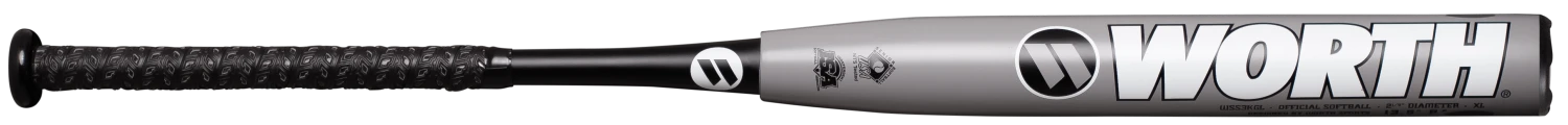 The 2023 Worth KReCHeR Senior Softball Bat offers a 2 1/4 inch barrel diameter, XL (.5oz) endload, and is legal for play in all SSUSA Leagues and Tournaments.