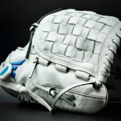 Easton’s Ghost series is a symbol of elite fastpitch play. The Ghost NX 12.5-inch Fastpitch Pitcher/Infield glove fits right in. These gloves were crafted in gameday-specific patterns designed for smaller hands and perfectly suited to the fastpitch game. On the outside, the Game Ready Diamond Pro Steer leather and Flex Notch closure system make this glove super soft and easy to handle right away. The Quantum Closure System on the glove back ensures a perfect fit for every player, and the interior Ax Suede microfiber lining creates unmatched comfort and durability. Also, the striking white-and-blue colorway and professional-grade silver metallic rawhide lace are sure to turn heads.